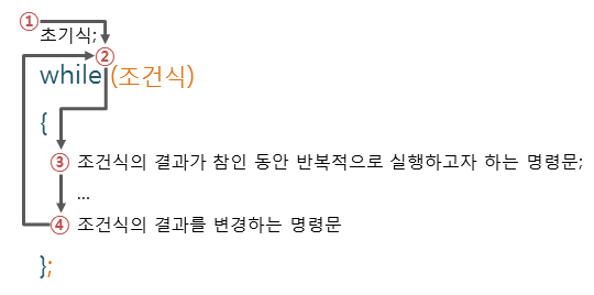 아래 while에 담긴 조건식을 검사하고 조건식이 true라면 {중괄호} 내용을 조건에 도달할 때 까지 반복한다.