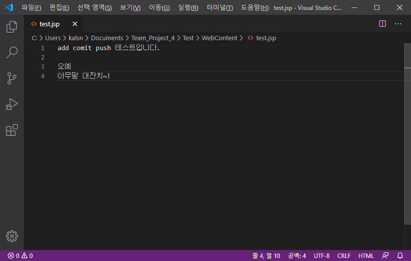 GitHub 1편에서 쓴 test.jsp를 예제로 씁니다.