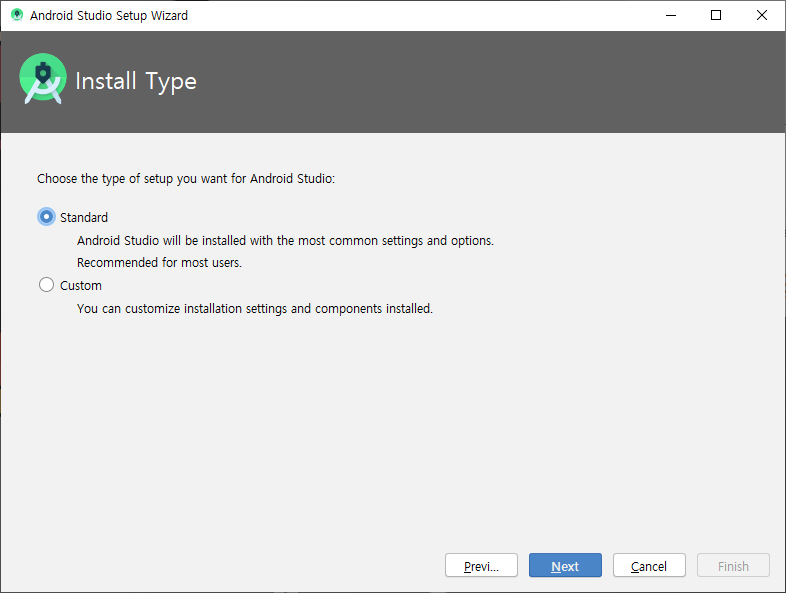 Standard 타입으로 설정 단계를 진행해줍니다.
