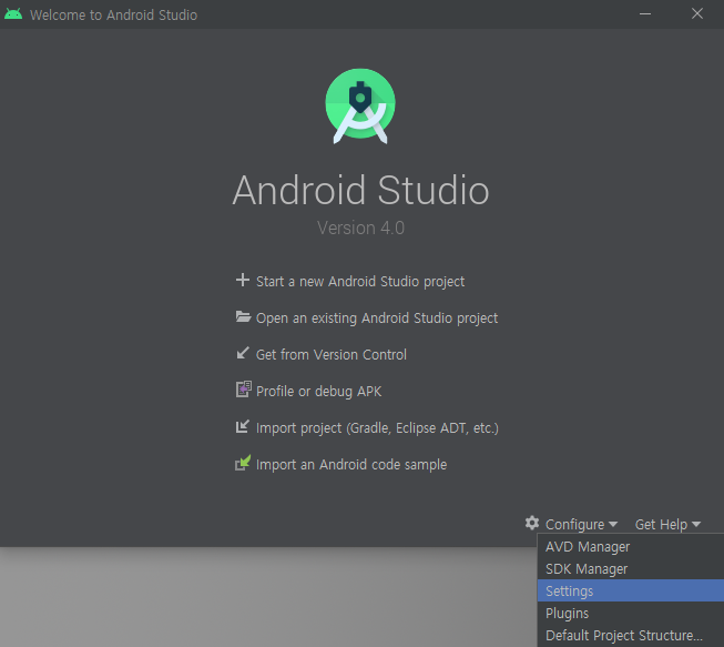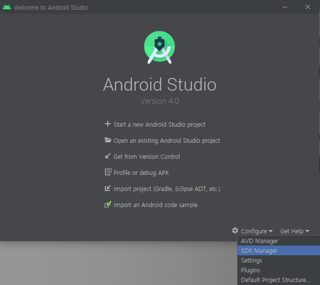다시 Configure를 클릭하여 SDK Manager로 들어갑니다.