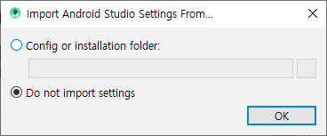 첫 실행 시 이전 환경설정 정보를 가져올 수 있는 창이 하나 뜨는데 없으므로 'Do not import settings'를 체크하고 OK 버튼을 클릭합니다.